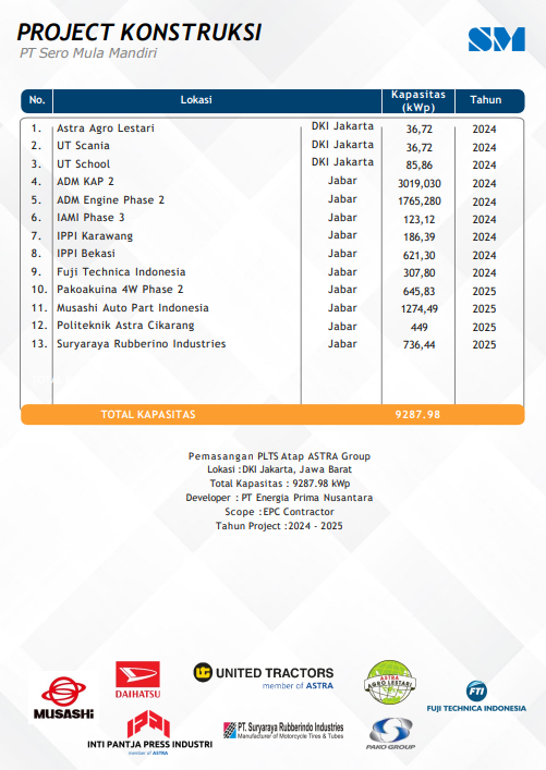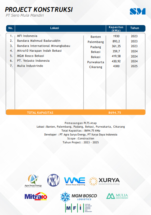 Kami telah terlibat dalam berbagai proyek strategis di berbagai wilayah, dengan kapasitas instalasi yang beragam dan client dari sektor industri, komersial, hingga pemerintahan.